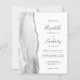A borda esquerda deste elegante convite de casamento moderno apresenta uma cinza e uma aquarela branca, aparada com falso brilho prateado. O texto personalizável combina manuscrito, copperplate e fontes itálicas em cinzas de carvão em um fundo branco. O verso apresenta uma cinza correspondente, design branco e agata prateada. NOTA: os envelopes não são incluídos automaticamente nestes convites de orçamento, portanto lembre-se de escolher a opção "envelopes brancos"!