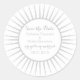 Deco Retro sofisticado e elegante Salve os adesivos de data em cinzas com uma design de explosão solar decorativa de arte circular. Fácil de personalizar, basta adicionar os detalhes do casamento nos campos de texto fornecidos. Clique em "Personalizar" para encontrar mais opções de personalização.