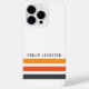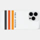 capas de iphone com três faixas horizontais em cinzas escuras e dois tons de laranja e seu nome personalizado em uma fonte ousada e moderna sans serif.