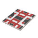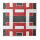 Design de azulejo de cerâmica moderna com formas geométricas em cinzas escuras, vermelha e branca.