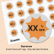 Etiquetas de desconto no dia do evento em um design de bolha de 9 pontos de 1,5" — uma em laranja com texto de cinza e uma em reverso. Marcadores de posição de texto para "XX% Desligado" a negrito. Use em monitores de produtos, cestos ou embalagens para obter suporte visual rápido. Na coleção "Designs de Cartão de visita e itens de Marketing". Ideal para butiques, compres de presentes, vendedores feitos à mão ou pop locais. Para obter mais ideias sobre marcas, visite www.KBMD3signs.com e, para obter assistência sobre personalização, entre em contato conosco em info@KBMD3signs.com. #EventSaleTag #PromotionalStickers #RetailMarketing