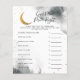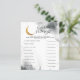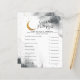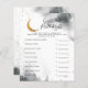 Um cartão de jogo "o preço está certo", com chá de fraldas sobre o tema da lua, com lua de lua de ouro falso e fundo de cinza. Os textos são editáveis. Um jogo perfeito para jogar durante o chá. Enumera o essencial do bebê e aos hóspedes para adivinhar o preço. Quem quer que adivinhe o preço mais próximo ganha!