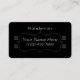 Este Classic Black/Cinza Handyman Cartão de visita diz tudo. Duro, limpo e elegante, você certamente deixará uma boa impressão com quem você entregar seu cartão! Um bom cartão de visita exige várias características. Deve ficar claro o que é seu negócio. Sua informação deve ser CLARAMENTE LEGÍVEL. O que quero dizer com isto é que, muitas vezes, estamos a entregar os nossos cartões de visitas a pessoas mais antigas, especialmente se vivemos num estado de reforma ou numa zona de reforma. Seu cartão precisa ter impressão grande e transparente. Seu nome e número de telefone devem sempre destacar-se mais no seu cartão. Esta é a informação que os seus clientes procurarão quando retirarem o cartão. Eles não se importam com o quão bonito é o seu cartão de visita, eles estão procurando informações e ele precisa estar na frente e no centro. Muitas vezes, "simples" é melhor. Com este cartão, você pode alterá-lo para seu próprio nome, seu próprio número de telefone, bem como seu próprio slogan ou linha de etiqueta (no verso). Feito em preto clássico, com a inscrição de cinzas, facilita a leitura dessa carta aos olhos, enquanto exausta um toque de classe e profissionalismo.