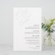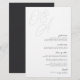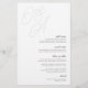 Um belo cartão de cardápio de casamento baseado em tipografia, que apresenta suas iniciais em letras de script sobredimensionadas no topo, em tons em tons para um efeito de marca d'água. Personalize com seus itens de menu embaixo, alinhados à direita. Nossa pintura de Cinza faz uma declaração clássica com preto suave e mal há cinzas em um fundo branco nítido.