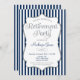 Um elegante convite de festas de aposentadoria com marinho azul e listras brancas com falso quadro de sotaque brilhante prateado e texto de marinho e cinza prateado. Este convite à reforma sofisticado e na moda é uma forma rico de honrar esse convite, que em breve será reformado e profissional. Para uma versão surpresa, basta clicar no botão Personalizar e adicionar uma linha de texto na parte inferior que diz "Shhh...é uma surpresa!"