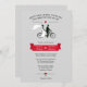 Convites para casamento de bicicleta Tandem com noiva e noiva andando de bicicleta tandem. Design de colheita divertida com faixa vermelha, coração e arco, em um fundo listrado de cinza. Citação no topo lê "envelhecer junto comigo, o melhor ainda está para ser"