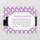 Convites de chá de panela com um padrão moderno e moderno com bolinhas brancas sorvidas sobre roxo e design de tipografia roxa e cinza. Cartões de agradecimento Correspondentes (itens comprados separadamente):