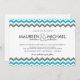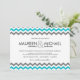 Convites de casamento modernos. Azul aqua tropical, cinzas e branco para casamentos casuais de praia ou de destino. O padrão trendy de impressão zig-zag com uma tipografia ousada e minimalista sans-serif pode ser personalizado como está, ou mover as coisas para criar belos convites para casamento faça-você-mesmo. Veja em todas as opções de papel do barato. Visite nossa loja para ver kits de casamento mais exclusivos em outros tamanhos, cores e estilos.