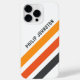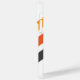 capas de iphone com três faixas diagonais em cinzas escuras e dois tons de laranja em um fundo branco e seu nome personalizado em uma fonte ousada e moderna sans serif.