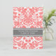Cartão feito sob encomenda do convite da festa de formatura na cor damasco floral alaranjada do rosa do pêssego brilhante elegante e sofisticado, o cinzento e o branco do vintage clássico. Personalize este cartão do anúncio do formando adicionando o ano de sua graduação e de seus detalhes da festa de formatura.