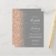 A borda esquerda deste elegante convite de casamento moderno apresenta uma borda falsa de pêssego. O texto personalizável combina manuscrito branco, fontes em copperplate e itálico em um fundo de cinza médio. O verso apresenta um brilho de pêssego e uma design de cinza.