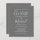 Apresentando nomes de estilo de assinatura, esta elegante cinza orçamentária e o convite de casamento branco podem ser personalizados com suas informações em caracteres de cinza. Projetado por Thisnotme©