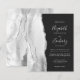 A borda esquerda deste elegante convite de casamento moderno apresenta uma cinza e uma aquarela branca, aparada com falso brilho prateado. O texto personalizável combina escrita manual, placa de impressão e fontes itálicas em cinzas prateadas em um fundo fora do preto. O verso apresenta uma cinza correspondente, design branco e agata prateada.