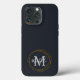 Capa de telefone elegante e moderna. Monograma legal contido em anéis de ouro em camadas sobre fundo de carvão profundo.
