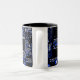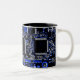 Design moderno com fecho de um conselho de circuito do computador em azul, preto e branco. Mug com um design personalizável para você personalizar com seu próprio texto, imagens e ideias. Criado com uma fotografia original e técnicas digitais por Jess Perry.