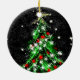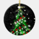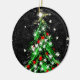 Este é um design que pintado dedo eu criei em um iPhone. Um design original bonito da arte… uma árvore de Natal festiva, brilhante usando diversas máscaras do evergreen, decoradas com vermelho, ouro e os ornamento brancos em um círculo cerâmico. A apelação das cores sazonais brilhantes que contrasta agradàvel em um fundo preto na neve levemente de queda em uma noite estrelado. Está coordenando selos, etiquetas de endereço e etiquetas também. Um design original por KRA.