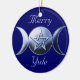 Símbolo triplo da deusa, três fases lunares. Lua cheia com pentagram, enceramento e a lua waning. Azul Mystical, translúcido no preto. Womankind, mãe, donzela e crone. Presente para Wiccans e neo-Pagans.