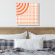 Círculos Concentrados Coloridos Personalizáveis Canvas com fundo branco abaixo de um segundo fundo de pequenos círculos concêntricos e finalmente o mesmo círculo concêntrico colocado grande e cortado para revelar apenas um quarto do círculo, no canto da canvas. Quatro da mesma canvas trabalharão juntas para criar um grande círculo completo no meio como uma imagem dividida.