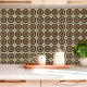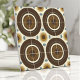 Este azulejo moderno de meados do século apresenta círculos concêntricos ousados em tons terrosos de marrom, amarelo mostarda e creme, acentuados por ovais geométricos minimalistas. O padrão inspirado no retro traz calor e caráter a qualquer parede de fundo, parede de destaque ou projeto de design de interiores. Perfeito para criar um espaço inspirado no vintage com um toque estiloso e contemporâneo.