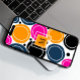 Um design brilhante e ousado de círculos abstrato em tons de rosa, cor de rosa e laranja. Um monograma centralizado em um quadrado laranja está disponível para personalizar o design. Na moda e olho pegando.