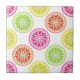Fatias brilhantes de frutas de citros em uma variedade de cores divertidas constituem o padrão gráfico desse azulejo. Os limões amarelos e cor-de-rosa, bem como os limões verdes e as laranjas, são representados em cruz nesta trabalho de arte simples e moderna.