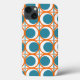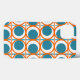 Esta capa de telefone tem um design moderno do século médio de círculos laranja abertos com círculos teóricos sólidos atravessando o padrão com linhas verticais lacrimogêneas e linhas horizontais laranja.