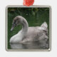 Este ornamento bonito estilo pingente apresenta uma fotografia de um lindo cisne. O cisne é um pássaro juvenil, você pode ver pelas penas das cinzas na cabeça e a falta de um bico de laranja. O cisne está deslizando graciosamente através da água em um lago calmo.
