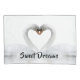 Na frente: Dois belos cisnes apaixonados dobrando suas cabeças e formando um coração. Um passado branco elegante, uma maneira perfeita de lembrar um dia importante! Um casal cisne fica juntos para a vida, então eles são o símbolo perfeito do amor. Com o texto: Doce Sonha De Volta: sem design