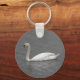Este chaveiro espetacular mostra uma fotografia de dois belos cisnes brancos com bicos laranja brilhantes. Os cisnes são cisnes mudas (Cygnus olor) e foram fotografados no Reino Unido. Eles estão nadando suavemente através de um rio de maré atrás do outro.