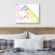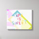 Este estilo colorido de citar a canvas de arte na parede é um doce texto tem um design geométrico em negrito com formas rosa, verde, azul e roxa. Arte de parede para decoração contemporânea em casa ou no escritório.