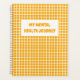 Aumente o seu bem-estar com este planejador de padrões gingham, cor de laranja e xadrez branca, com uma citação crescente de saúde mental. Mantenha-se organizado e inspirado diariamente.