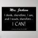 Acho que o sentimento é claro, sim... :) Aqueles que pensam o contrário nunca ensinaram. Obrigados, Sharon Rhea Ford, NBCT-Art Citação original sobre artigos de professores por Sharon Rhea Ford. Itens originais dos professores (com direitos autorais) de Sharon Rhea Ford ... Copyright:Todos os Direitos Reservados Registrados:Sat Fev 07 14:31:50 UTC 2009 Impressão digital:Mostrar impressão digital digital e3860c4f5cfa933c3ebf98f81c327b937 700b9da37b2ee0a333851d36eddb Título:Ensinando Descrição da Cotação:Eu acho; portanto, sou, e ensino; portanto, posso. NMC:C9E78-CCFC0-4E856