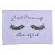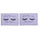 Ilhotas pretas com aspas elevatórias em um padrão de pinos púrpura e branco pastel.