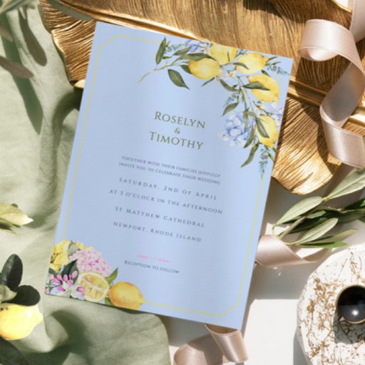 Elegant Citrus Blue Pastel Watercolor Wedding RSVP Card from the same collection. this wedding Suite is ideal for summer and wedding destination.