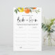 Adivinha a idade da noiva e do noivo em cada fotografia. Quem tem as respostas mais corretas ganha! | Adicione este cartão de jogo de chá de panela divertido e divertido ao seu evento. Este cartão de jogo personalizável "Quantos Anos Tinha a Noiva e o Alcance" apresenta ilustrações em aquarela de limão e laranjas. Personalize adicionando seus próprios detalhes. Este cartão de chá de panela cítrico é perfeito para chás de panela e chás de casamento de verão.