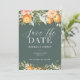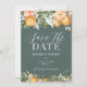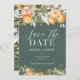 Citrus, laranja + casamento florescente salvem o convite de data. Linda folhagem de aquarela, fruta e ilustrações florais. Parte de uma coleção.