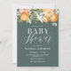 Citrus, laranja + convite de festas de chá de fraldas. Linda folhagem de aquarela, fruta e ilustrações florais. Parte de uma coleção.