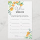 Chá de panela temático dos citros de aquarela com ilustração aquosa das laranjas em um galho de árvore. Manuscrito caligráfico elegante, perfeito para primavera, verão ou casamentos de outono. Itens correspondentes disponíveis.