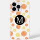 Capa de telefone bonita e refrescante com padrão de frutas cítricas de fatias de limão laranja e amarelo em fundo branco. Monograma elegante personalizado e nome em um quadro preto redondo. Um cobrir telefônico muito bonito, sofisticado e moderno. Perfeito para a moça feminina à procura de estética simples e mínima, e qualquer pessoa que ame fruta e citros! Personalize ainda mais com a ferramenta do editor, mude as fontes, cores, tamanhos, mova as coisas e até adicione mais coisas! Para todos os modelos de iPhone da Apple e alguns smartphones da Samsung Galaxy.