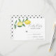 Cartão de chá de panela com limão a aquarela, com ilustração aquosa dos limões numa árvore. Manuscrito caligráfico elegante, perfeito para primavera, verão ou casamentos de outono. Itens correspondentes disponíveis.