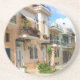 Belas casas com flores e varandas em uma rua urbana em Grécia, Porta copos redonda