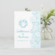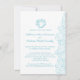 Simples desenho em aqua azul de uma concha de moluscos, com ondas gráficas do mar, Belo azul-aqua em um convite de casamento de praia costeira branca. Um convite de excelente para uma praia, inspirado na costa ou casamento de destino do oceano Edite estes convites com seu próprio nome de noiva e noivos e palavras de convite. Desenho de tinta shell exclusivo e design por Sarah Trett. www.sarahtrett.com para www.mylittleedenweddings.com