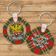 Crachá da crista Clan MacGill rodeado por uma correia e fivela sobre fundo tartano. Texto personalizado de ambos os lados.