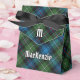 Crachá da crista Clan MacKenzie rodeado por uma correia e fivela sobre fundo tartano. Texto personalizado e monograma.