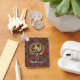 Crachá da crista Clan MacPherson cercado por uma correia e fivela sobre fundo tartano. Texto personalizado de ambos os lados.