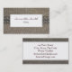 Simples elegância de roupa de tecido, burlap com embelezamento de prata. O aspecto ecológico e a simplicidade criam o cartão de visita universal. PERSONALIZAR o produto existente: Clique no BOTÃO PERSONALIZAR na imagem do produto. ALTERAR ANTECEDENTES : Clique em Editar nos botões principais. No botão do menu exibido, clique em FUNCIONAMENTO e escolha a cor apropriada. Nota: se a imagem cobrir toda a superfície do design, você não verá a cor de fundo. Qualquer redistribuição de material protegido por direitos autorais requer permissão do proprietário dos direitos autorais.
