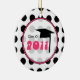 Um ornamento da graduação que caracteriza um fundo de bolinhas pretas sobre o branco. Projete o círculo completo interno esboçado no rosa lê uma "classe de 2011" e caracteriza um boné de formatura.