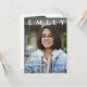 Classe de Foto Moderna de Anúncio e Convite de festas de Graduação 2025. Celebre o grande marco do seu formando com este na moda e a Classe personalizada de Convite à Festa de formatura Fotográfica 2025! Apresentando um layout moderno e a foto favorita de seu formando, este convite é a forma perfeita de anunciar sua conquista e convidar amigos e família para participar da comemoração. Estando eles se formando no segundo grau, na faculdade, ou na universidade, este design de manutenção digno adiciona um toque pessoal e profissional ao seu dia especial. O design inclui um título ousado "Classe 2025", nome personalizável, detalhes de eventos e um espaço para mostrar uma foto que captura a personalidade e a jornada do formando. A parte traseira da placa oferece espaço adicional para informações da parte, detalhes de RSVP ou uma mensagem sincera. Você também pode personalizar as fontes, as cores e o layout para se adequar ao seu estilo e ao seu tema de evento. Impresso em papel de alta qualidade com uma variedade de opções de conclusão, este convite não só parece excelente como também é muito caro. É perfeito para enviar e entregar pessoalmente. Quer você esteja planejando um CHURRASCO de quintal, um banquete elegante, ou uma reunião informal, este convite dá o tom e deixa todos entusiasmados para celebrar as conquistas de seu formando. Torne a sua comemoração de graduação inesquecível com um convite personalizado que reflete o orgulho, a alegria e o entusiasmo deste evento que se desenrola ao longo da vida. Peça a sua hoje e crie uma lembrança acalorada por este momento orgulhoso! Edite e personalize facilmente com o nome, a foto, a data, a hora, a localização do seu formando e muito mais diretamente na plataforma do Zazzle. Para mais personalizações, contacte-me em mypaperlove2021@gmail.com