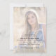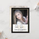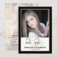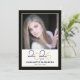 Este convite de festa de formatura moderno apresenta uma foto quadrada na frente e uma foto vertical de cheio no verso. Esse design preto e ouro é contabilizado com o ano de graduação de 2025 aparecendo em uma escrita elegante.