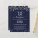 Um convite à reunião da classe azul, moderno e elegante, favorável ao orçamento (a amostra mostra 10 anos) para qualquer ano impresso em papel leve de 4,5x5,6 polegadas em vez de estoque de papelão com estrelas e luzes prateadas, tipografia de script de rico e um fundo de cores personalizado (mostrado em azul marinho) você pode mudar para a cor da sua escola ou para o tema da festa. Todo texto é editável para fazer o seu. Ideal para orçamentos conservadores e/ou entrega de mão aos convidados. ASSISTÊNCIA: para obter ajuda sobre modificação ou personalização do design, alteração de cor, redimensionamento, transferência do design para outro produto ou você gostaria de coordenar itens, entre em contato com o designer ANTES DE ENCOMENDAR através da guia MENSAGEM de bate-papo Zazzle abaixo ou envie um email para makeitaboutyoustore@gmail.com.